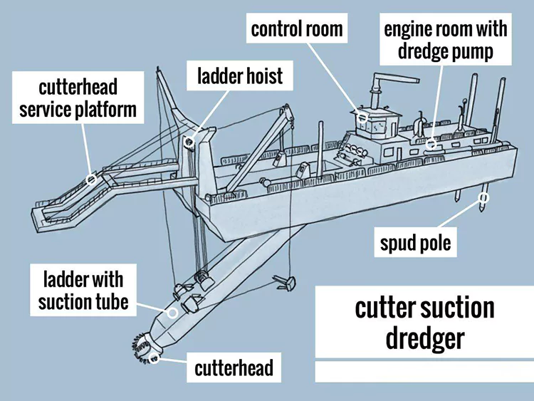 E so strutture core includenu un sistema di cutter, un sistema di aspirazione è scaricamentu, un sistema di posizionamentu è di traversu, è un sistema di putenza, chì permette l'operazione integrata di "scavazione-trasmissione-scarico". Hè largamente utilizatu in i prughjetti di dragaggio è ricuperazione di u fiumu.。
