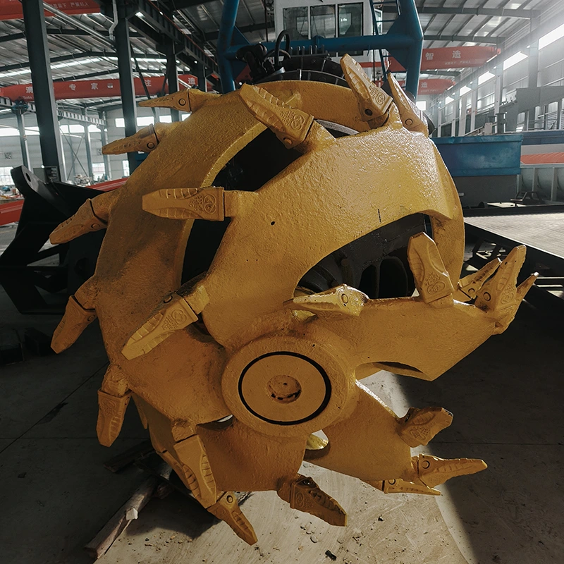 Dotatu di una testa di taglio guidata idraulicamente in fronte, gira per tagliate è rompe strati di sabbia d'oru compattati, affruntendu a bassa efficienza di draghe d'oru tradiziunali in cundizioni duri di i fiumi. Per esempiu, in i fiumi cù strati di sabbia indurita, u cutter head pò sfracicà i materiali minerali in un statu pumpable.